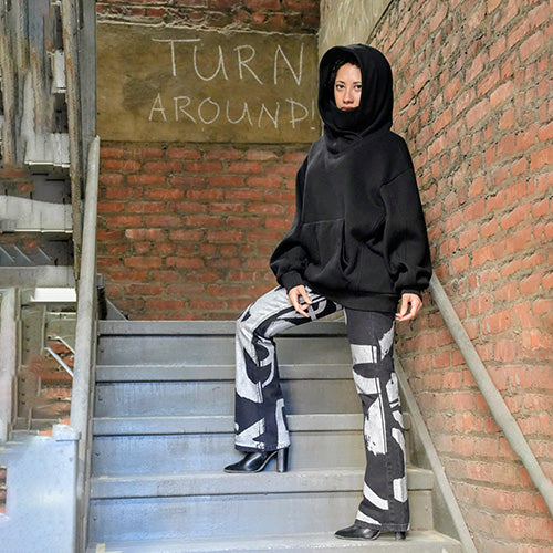 The oversized fit creates a bold yet relaxed look, paired with two pockets—one discreetly hidden for extra security. A snap-up turtleneck flows into the oversized hood, keeping you warm while maintaining a clean, stylish profile.